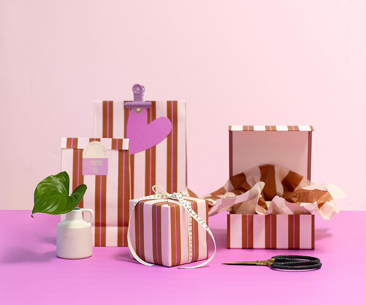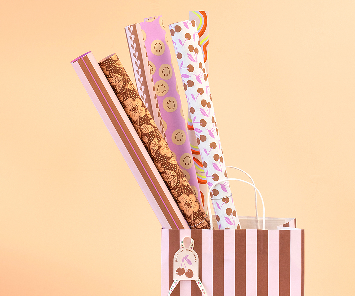 This season, we have another extensive collection of stripes on offer! Available in both modern, vibrant colours and a subtle black with beige accents. Think: wrapping paper, gift bags, consumer rolls, block bottom bags, magnetic boxes, carrier bags, tissue paper...