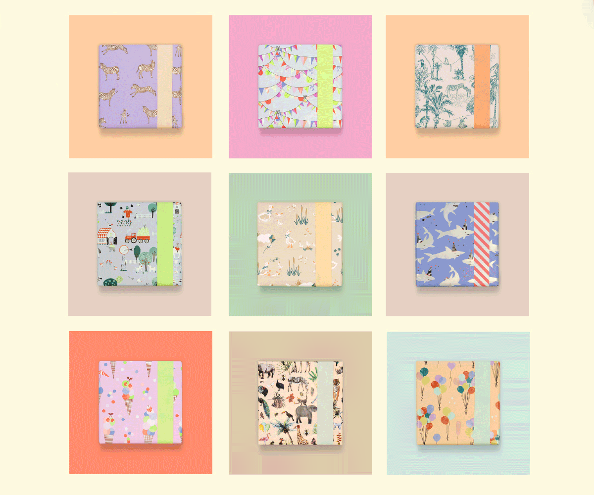 Discover our wide range of wrapping paper and wrapping decorations for births and children! From exuberant universal designs such as Jungle, Party Animals and Farm to more subdued designs such as Zebra and Vintage Jungle. In addition to wrapping paper, flat bags and consumer rolls, you can of course decorate to your heart's content with matching stickers, ribbon and gift tags. Which is your favourite?