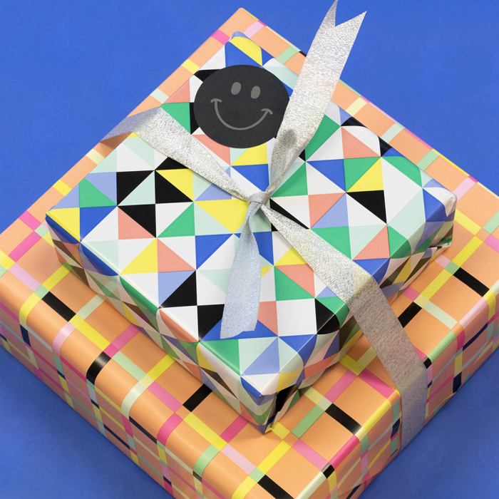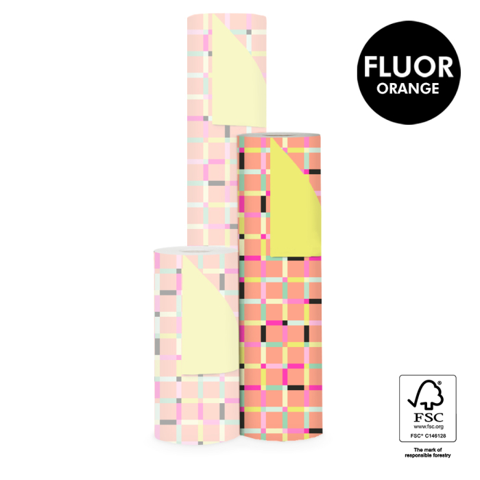 Wrap your gifts quickly and stylishly with this 150-meter counter roll of wrapping paper from House of Products. Featuring a modern graphic design with colourful rectangular blocks in pink, black, yellow, and green on a salmon background, it’s an eye-catching option for any occasion. The light yellow back side adds an extra playful touch. This FSC®-certified, sustainable wrapping paper is perfect for shops and online retailers aiming for efficiency without sacrificing style. Pair it with matching stickers and ribbons for a polished, professional presentation. House of Products delivers high-quality packaging solutions for retailers.