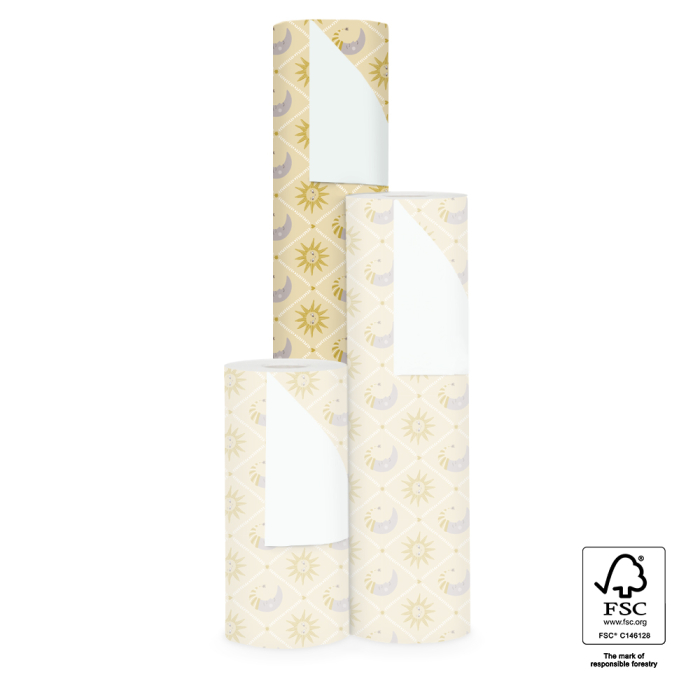 It may happen that a registration mark is visible on the product, this is inherent to this product and therefore to the production process and cannot be prevented. Naturally, we try to place the registration mark as favorably as possible. However, we cannot always prevent this from being visible on your wrapping paper, gift bag or consumer roll.