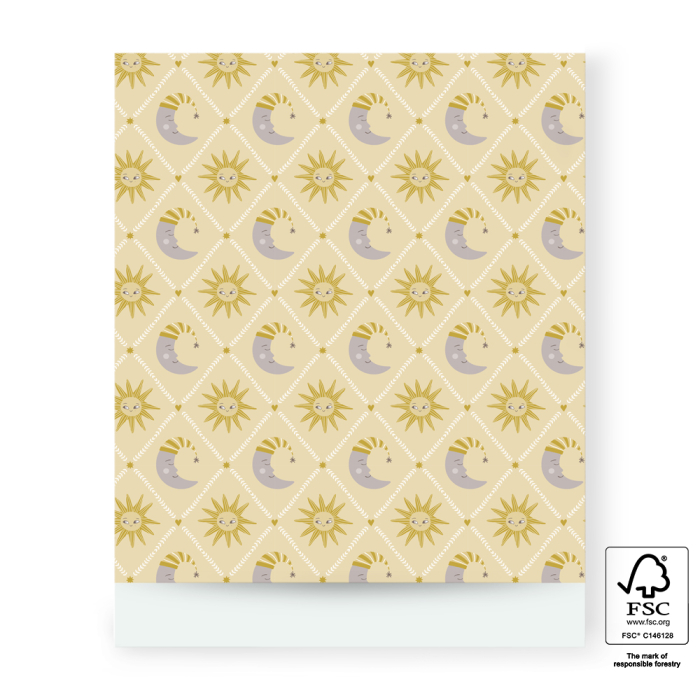 It may happen that a registration mark is visible on the product, this is inherent to this product and therefore to the production process and cannot be prevented. Naturally, we try to place the registration mark as favorably as possible. However, we cannot always prevent this from being visible on your wrapping paper, gift bag or consumer roll.