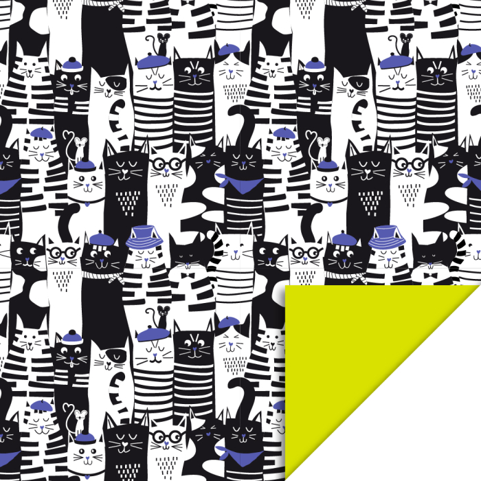 Make gift wrapping fun and cheerful with our flat gift bags from House of Products. These bags are available in various sizes and feature a playful design with cute cats, each with their own funny expression. The lively wrapping paper, with blue details, brings a smile to your face. The yellow interior adds a touch of sunshine to your gift. As a sustainable and FSC® certified company, House of Products aligns perfectly with your conscious lifestyle. Make your gifts special and stand out with these unique gift bags.