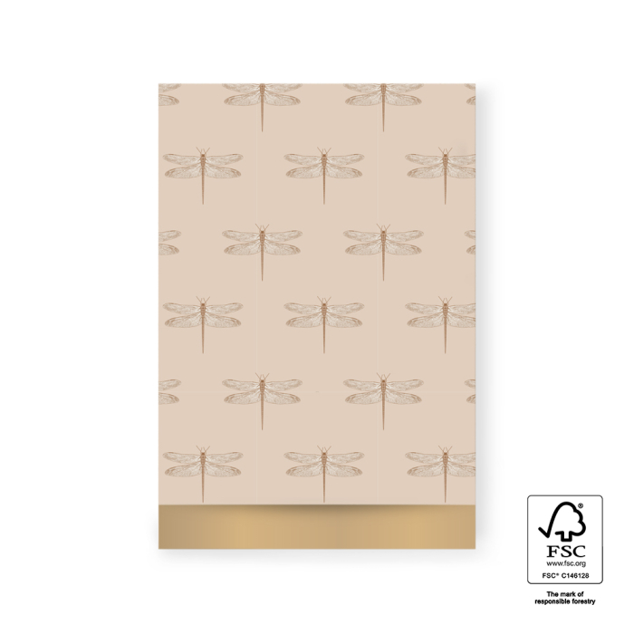 Wrap your gifts in style with these flat gift bags from House of Products! Available in various sizes, perfect for small and medium gifts. The design features elegant dragonflies drawn in brown on a beige background, creating a calm and refined look. The golden interior adds a luxurious surprise when opening the bag. Pair with matching ribbon or stickers for a complete, festive presentation. FSC-certified and sustainable, these gift bags are ideal for retailers and online shops wanting to provide customers with high-quality and eco-friendly packaging.