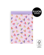 Delight your customers with these flat gift bags from House of Products. The romantic design features heart duos in gold, purple, warm red and lime on a pastel pink background. The lilac interior adds a playful and stylish contrast. Available in multiple sizes, they are perfect for small gifts, jewellery or treats. The strong material and flat design make them practical at the counter. Pair with matching ribbon or stickers for a complete, elegant presentation. FSC-certified and sustainable, ideal for retailers and online shops looking to wrap gifts beautifully.