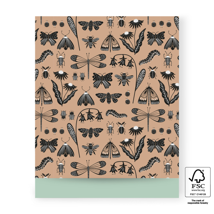 Make your gifts stand out with the sustainable gift bags from House of Products. This natural wrapping paper is fully printed with a unique insect pattern in brown, black, and white. The light green interior adds a fresh and distinctive touch to every package. Crafted from FSC®-certified paper, these gift bags are eco-friendly and perfect for retailers and webshops looking for stylish and unique packaging options. The flat bags come in various sizes, making them ideal for small to medium-sized presents. Choose sustainability, quality, and exceptional design with House of Products' gift bags.