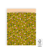 These flat flat bags from House of Products are suitable for all ages and occasions. Featuring a playful confetti design with small dots in pink, orange, light yellow and dark blue on an olive green background, they add a cheerful touch to any gift. The peach-coloured inside provides a fun surprise. Available in various sizes, perfect for wrapping small gifts quickly and stylishly. Pair with our FSC®-certified ribbons and stickers for a complete and sustainable packaging solution. Ideal for your store or webshop!