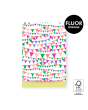 Add a festive touch to your gift wrapping with House of Products’ flat gift bags. Featuring a cheerful garland design in orange, blue, green, and pink, these bags are perfect for birthdays and parties. The bright yellow interior adds a playful finishing touch. Available in various sizes and FSC®-certified, they combine style and sustainability, making them ideal for retailers who value eco-friendly packaging. Pair these gift bags with our matching ribbons and stickers to create the perfect festive gift presentation. Surprise your customers with these unique and environmentally conscious packaging options.