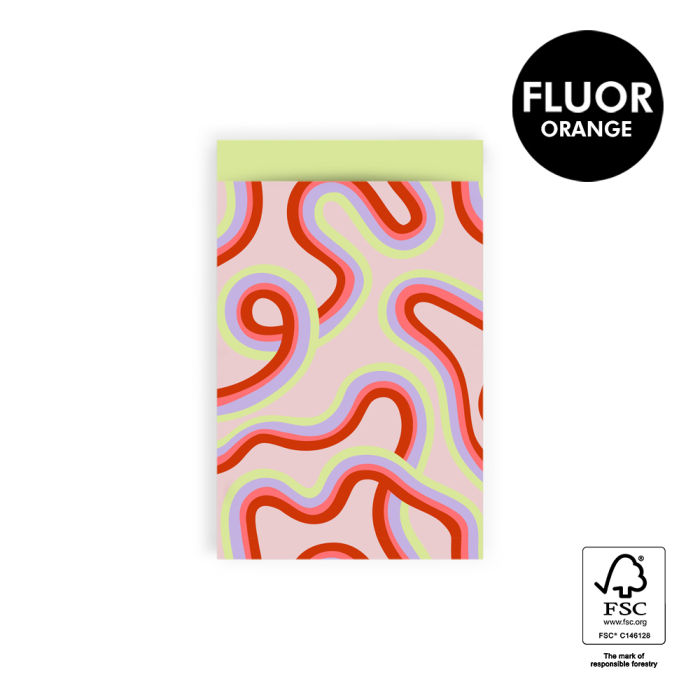 Stylish gift bags from House of Products with a modern design! The flat format makes them convenient at the counter and suitable for various gift sizes. The print features curved lines in lime green, purple, pink and red on a nude background, giving a contemporary and chic look. The lime green interior adds a playful touch when opening the bag. Available in multiple sizes, perfect for gifts, treats or small surprises. Pair with matching ribbon or stickers for a complete presentation. FSC-certified and sustainable, ideal for retailers and online shops who want to present gifts stylishly.