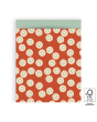 These flat flat bags feature cheerful pastel orange smileys on a cognac background, making every gift special. The design suits all ages and creates a happy, vibrant feel. The inside is light pistachio green, adding a fresh touch. Available in various sizes, so you can always find the perfect fit for your gifts. House of Products offers sustainable, FSC®-certified packaging, ideal for retailers and webshops. Combine these bags with our matching stickers and ribbons for a complete, eco-friendly wrapping solution that will delight your customers.