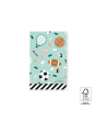 Wrap sporty gifts in style with these flat gift bags from House of Products. The design features balls, tennis rackets, skipping ropes and confetti on a pistachio background, with colours including brown, orange, jade green, white and black. The black stripe on the interior adds a playful touch. Available in multiple sizes, they are perfect for small sports gifts, accessories or treats. The strong material and flat design make them practical at the counter. Pair with matching stickers or ribbon for a complete, professional and sustainable gift presentation.