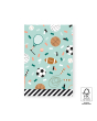 Wrap sporty gifts in style with these flat gift bags from House of Products. The design features balls, tennis rackets, skipping ropes and confetti on a pistachio background, with colours including brown, orange, jade green, white and black. The black stripe on the interior adds a playful touch. Available in multiple sizes, they are perfect for small sports gifts, accessories or treats. The strong material and flat design make them practical at the counter. Pair with matching stickers or ribbon for a complete, professional and sustainable gift presentation.