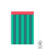 These flat flat bags feature a colourful stripe design, perfect for wrapping presents in style. The wide stripes in green and jade green are highlighted with a narrow red detail stripe. The inside of the bags is red, creating a cheerful contrast. Available in various sizes and made from sustainable FSC®-certified paper. House of Products supplies these bags especially for retailers and online shops looking to offer their customers stylish and eco-friendly packaging. Pair them with our matching stickers and ribbons for a complete gift wrap solution. Order yours today!