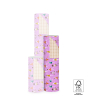 This 150-metre wrapping paper roll is perfect for packaging gifts for girls. The design features adorable ballerinas in tutus on a soft pink background, with accents of ochre yellow, jade green and orange. The reverse side has a subtle beige harlequin print - a sweet finishing touch. FSC®-certified and sustainably made, this paper is ideal for children’s gifts, birthdays or baby boutiques. Combine with matching ribbons and stickers from House of Products for a full gift-wrapping experience. Wrap with style and care - we provide the charm, you add the magic.