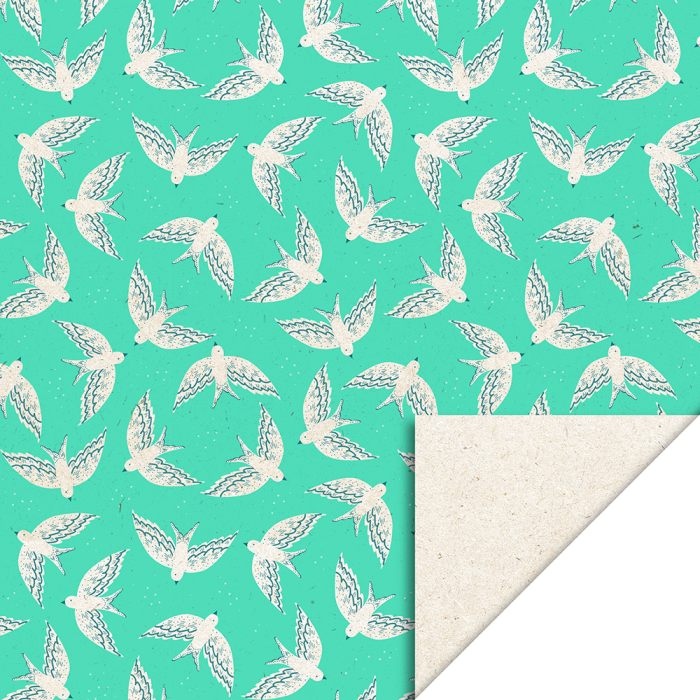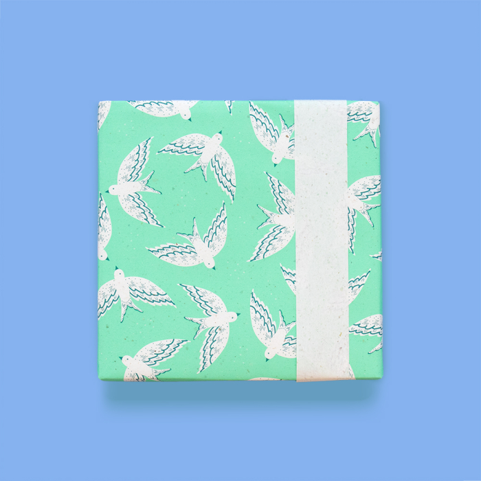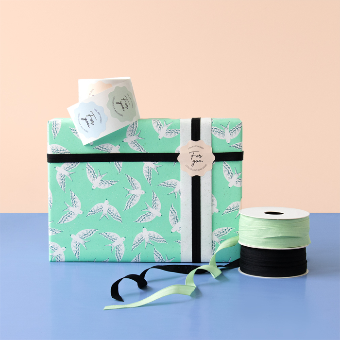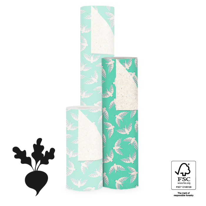 Discover our new counter roll wrapping paper from House of Products, perfect for your store! Featuring a design of hand-drawn birds on a fresh mint green background. This 150-meter roll is not only stylish but also environmentally friendly, printed on sugar beet pulp paper. Make a unique choice for sustainability in your range. House of Products guarantees FSC® certification and sustainable products, making this roll perfect for conscious retailers. Order now and offer your customers a green alternative for gift wrapping!