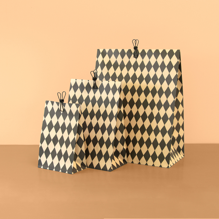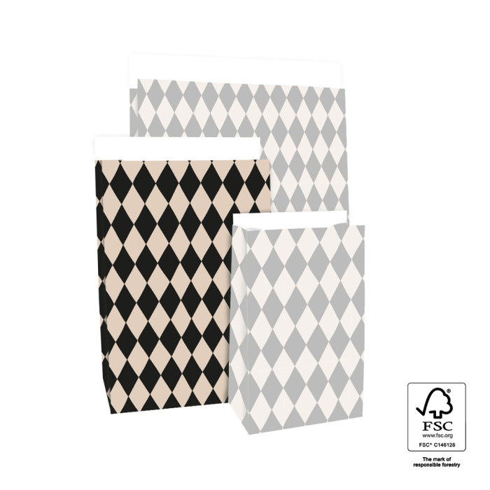 For medium-sized gifts, Harlequin Neutral block bottom bags are perfect. The 3 cm flap makes closing simple. FSC® certified.