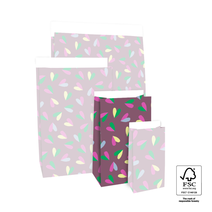 Wrap your gifts with love in our Hearts Duo block bottom bags. Perfect size for small surprises. These block bottom bags are available in 4 sizes, all featuring a convenient closure flap. Seal with a sticker or office clip and be amazed at how quickly and luxuriously you can pack with these high-quality, FSC® certified block bottom bags. The flap of this block bottom bag is 2 cm.