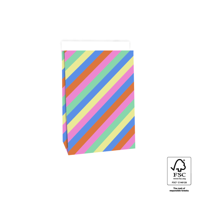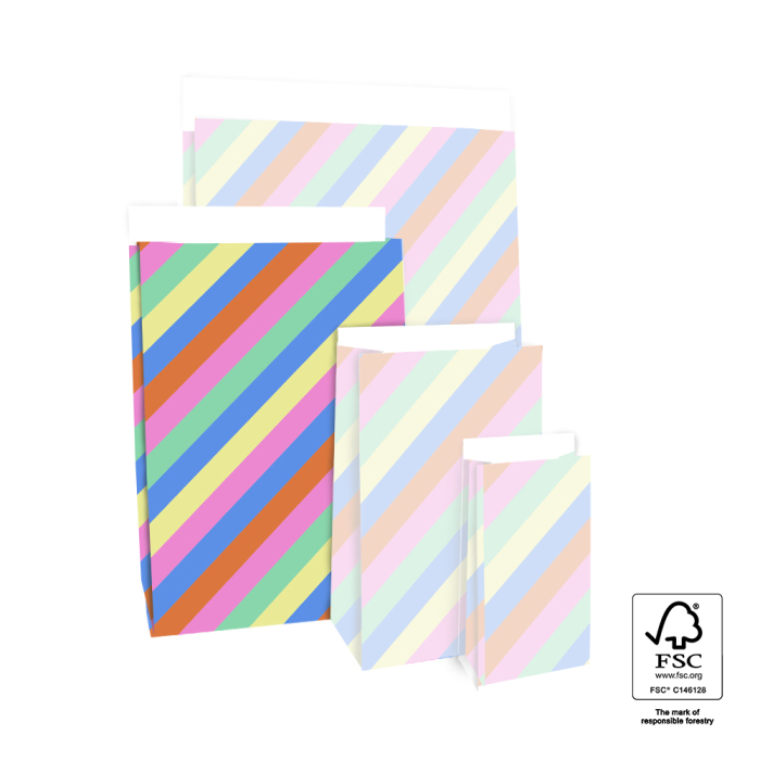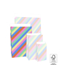 Make wrapping a celebration with our block bottom bags - Multi Stripes, medium (17 x 10 x 25 cm). These bags are perfect for wrapping gifts and feature a 3 cm flap that closes easily with a sticker or paperclip. Made from FSC®-certified material for a combination of sustainability and style.