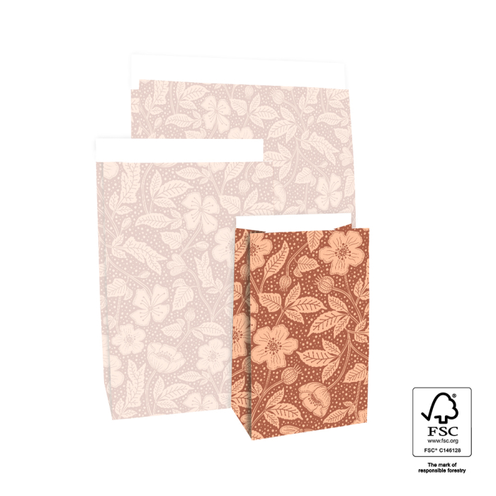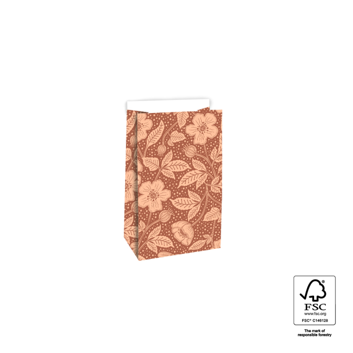 Make every gift a celebration with our block bottom bags Poppy Terra in small size 12 x 7 x 19 cm. The cheerful design with colourful poppies on a terra background gives a playful and festive look. The sturdy block bottom keeps the bag upright and the 2 cm flap closes easily with a sticker or paperclip. Made from FSC® certified paper these bags provide sustainable and premium packaging. Perfect for shops and online stores wanting an original and festive presentation for small gifts.