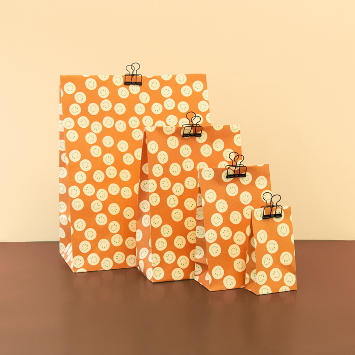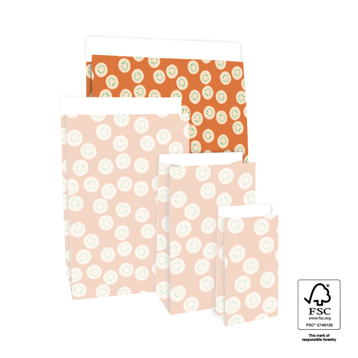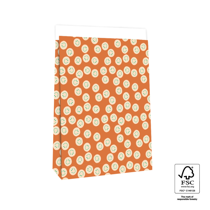 Our large Smiley Cognac block bottom bags offer plenty of space and a cheerful look. The 4 cm flap is easy to close. FSC® certified and sustainable.