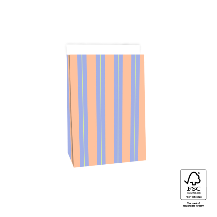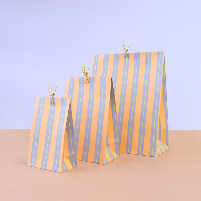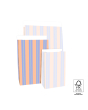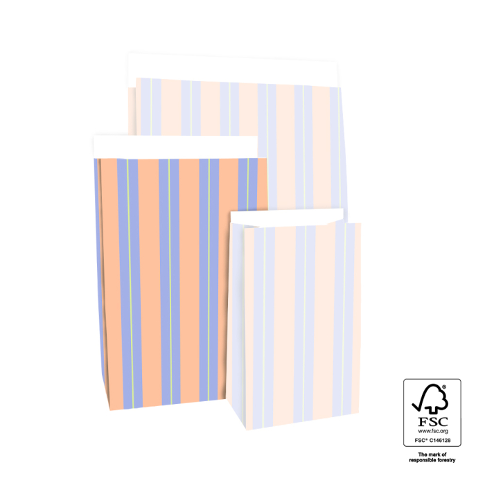 Our block bottom bags Stripe Chalk Blue in medium size 17 x 10 x 25 cm bring a calm and modern look to any gift. The blue chalk stripe design feels fresh timeless and elegant making it suitable for every gifting moment. The spacious block bottom provides room for medium sized items and the 3 cm flap can be closed easily with a sticker or paperclip. Made from FSC® certified paper these bags offer a sustainable and premium packaging solution for shops and online stores.