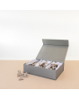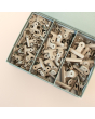 Add a stylish touch to your packaging with this set of beige metal clips in three sizes. The set includes 75 small clips (30 x 30 mm), 50 medium clips (40 x 37 mm), and 25 large clips (50 x 45 mm). Perfect for sealing bags, bundling packages, or organizing small items. Supplied in a handy box of 150 pieces. Ideal for shops and online stores that value quality and presentation.