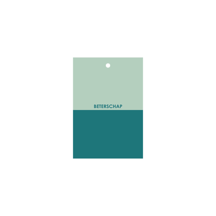 Convey a heartfelt message with these “Beterschap” gift tags in fresh Jade green and pistachio shades. Perfect for brightening up gifts and wishing someone a quick get well. The split labels are sturdy and easy to attach to gifts. Packed per 20 pieces, ideal for shops and web shops looking for stylish packaging materials. The soft colours are accessible and make your gift extra personal. Combine with matching wrapping paper, stickers or ribbon from the House of Products range for beautiful, complete packaging.