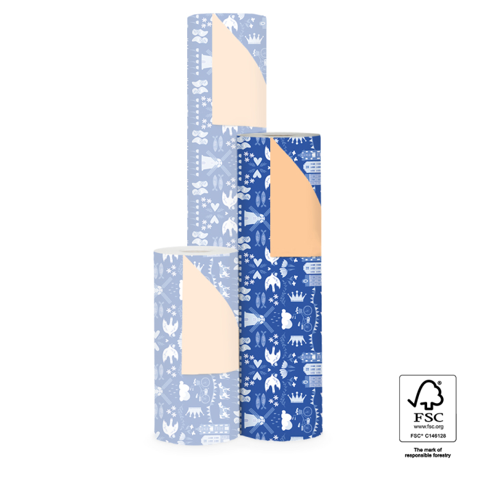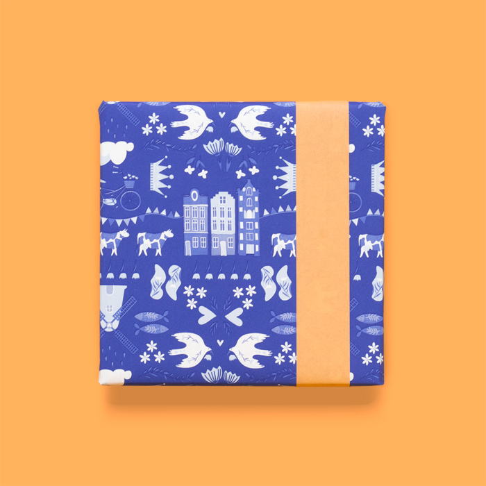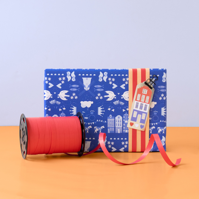Give your store a truly Dutch touch with our counter roll wrapping paper from House of Products! The pattern featuring herring, canal houses, cows, clogs, and doves exudes genuine Dutch coziness. Perfect for stores in tourist areas or for anyone who loves the Netherlands. With 150 meters of wrapping paper, you're generously equipped. As a sustainable and FSC®-certified company, we offer high-quality products. Make gift wrapping a celebration with our unique Dutch design!