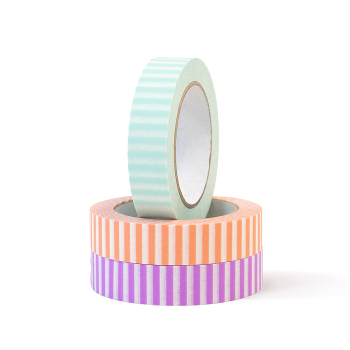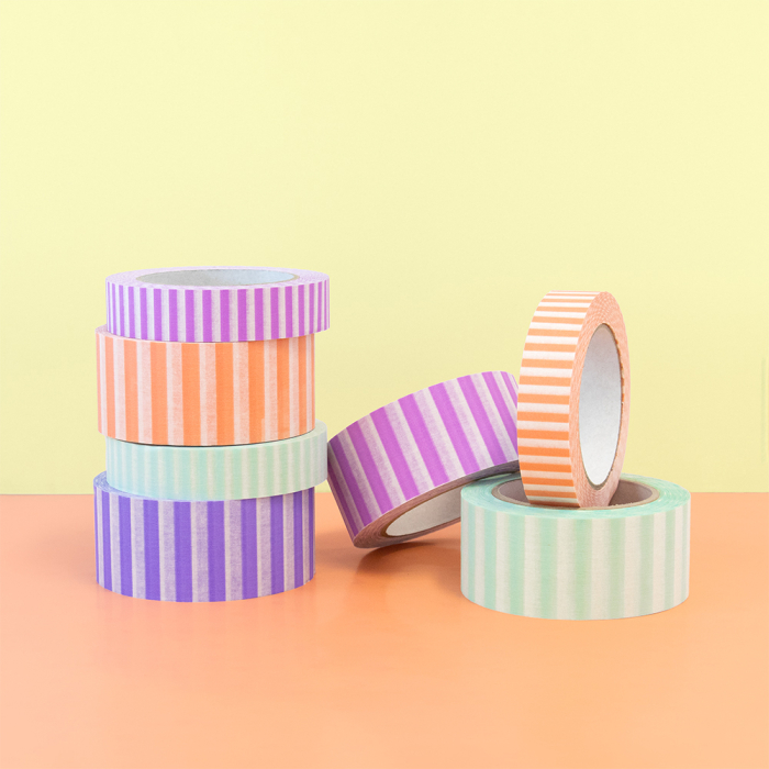 This set of printed ECO tape with stripes in three colours from House of Products is just that little bit more unique than craft tape and much more sustainable than plastic tape, of course. The adhesive layer is biodegradable and the ink is water-based. The tape adheres to all surfaces. The tape is sold per 3 pieces. A roll is 25 mm wide and 50 m long. We guarantee adhesive strength for up to 12 months after tape purchase. After 12 months, the strength may decrease. This size of tape fits in a large-size adhesive tape roll holder.