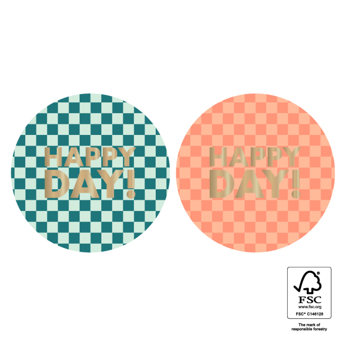 This is a nice sticker roll! The surface has a block pattern (check) with Happy Day in the gold foil!