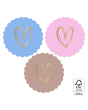 Create an enchanting presentation with our Lovely Heart Gold stickers on a roll. The romantic design adds a touch of love to your packaging. As a product of House of Products, an FSC®-certified company, these stickers emphasize not only charm but also environmental awareness. Leave a lasting impression with these enchanting stickers that distinguish your brand.
