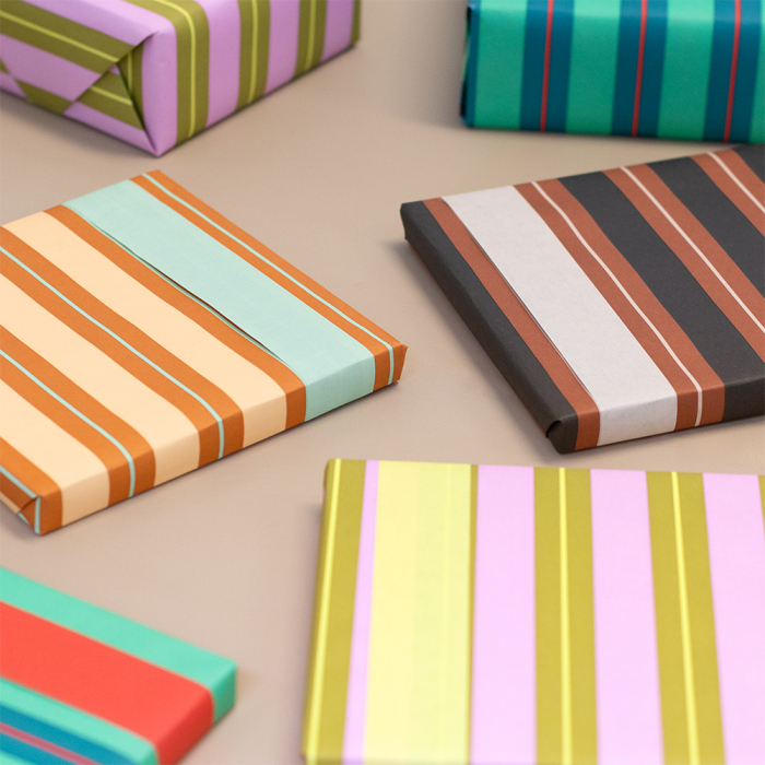 Add a vibrant touch to your gift wrapping with this 150-metre counter roll. Featuring bold stripes in green and jade with a fine red accent line, this FSC®-certified wrapping paper is ideal for retailers who want to stand out. The bright red reverse adds a cheerful twist to every parcel. Sustainable, stylish, and practical - perfect for daily gift wrapping in shops and webshops. Combine it with matching ribbons or stickers from House of Products to complete your gift presentation. A colourful choice for festive and everyday occasions.
