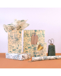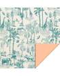 Give your gifts a unique, natural look with this 150-metre counter roll, printed on sustainable sugar beet paper. The design features a detailed jungle line drawing with animals such as giraffes, rhinos, zebras, and elephants in jade green. The peach reverse adds a soft, warm finishing touch. The strong paper rolls out smoothly, ideal for daily use in your shop or webshop. Perfect for wrapping gift sets, toys, or nature-themed presents. Combine with matching ribbon or stickers for a professional presentation. FSC-certified and sustainable, specially for retailers and webshops.