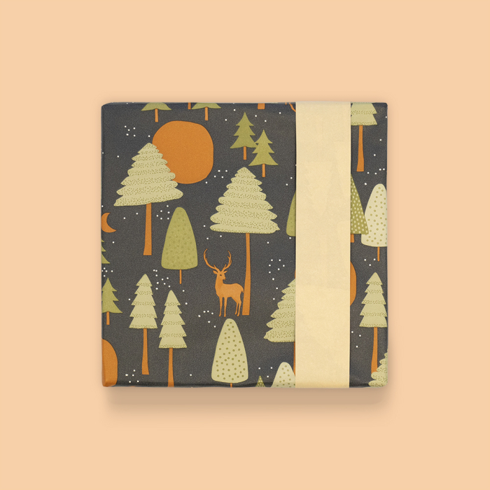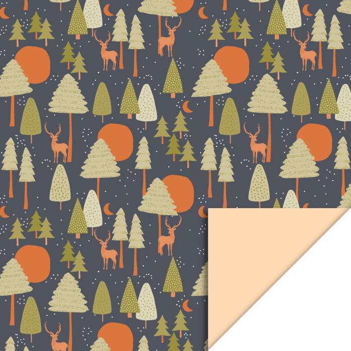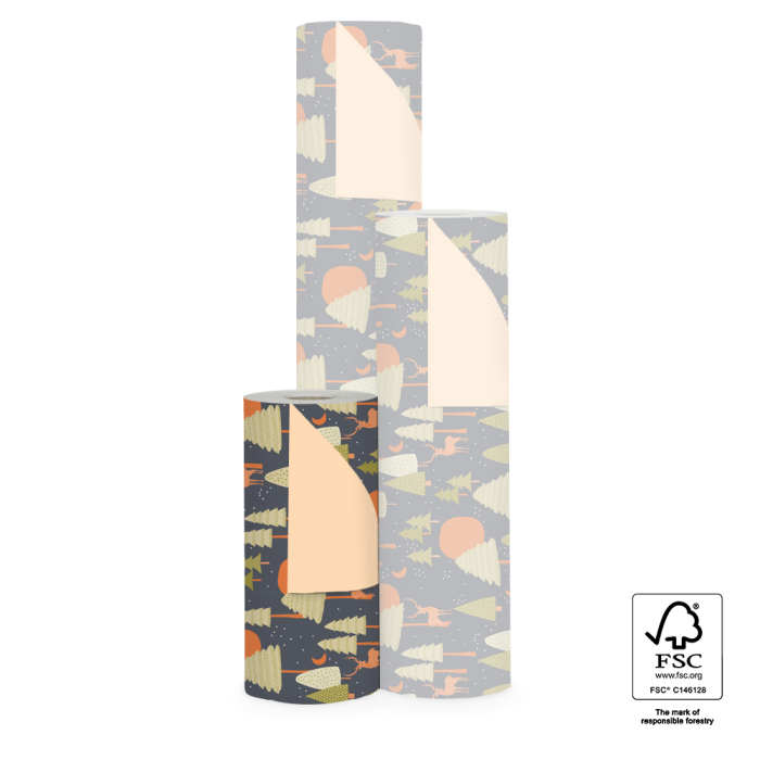 Wrap your gifts beautifully with this 150-metre roll from House of Products. The sustainable, FSC®-certified wrapping paper features a natural design with trees and deer in dark blue, cognac, and olive green. The soft peach reverse side adds versatility and makes it easy to pair with ribbons and stickers. Ideal for retailers who want to express quality and eco-friendliness. This wrapping paper gives your gifts a warm, natural look that appeals to customers. House of Products provides everything you need for a complete, sustainable packaging solution.