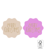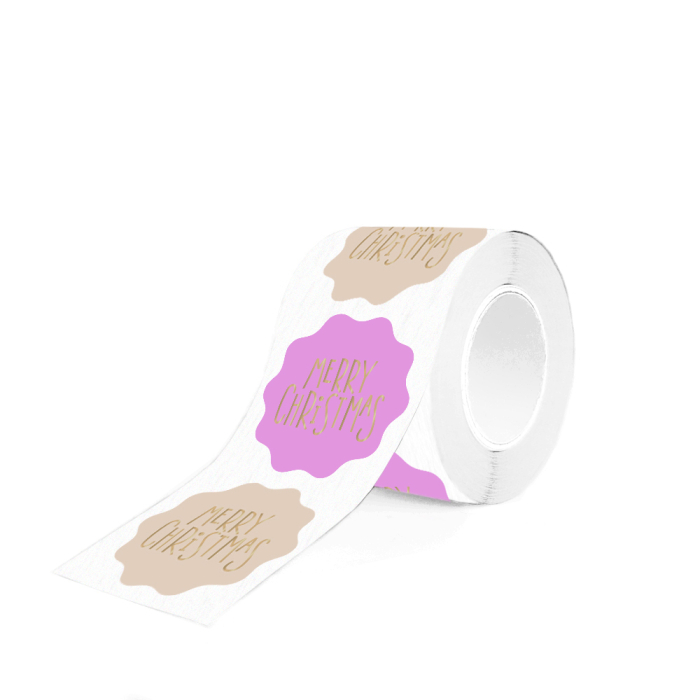 Complete your Christmas gifts with the X-mas Stickers Duo - Text Merry Christmas Gold Pink. This roll contains 250 stickers (Ø 55 mm) featuring two designs with the text ‘merry christmas’ in shiny gold foil. The pink and beige colours add a soft, festive touch. The product is FSC® certified, ensuring sustainable and stylish wrapping. Perfect for shops and webshops looking to add a luxurious and eco-friendly finish to their Christmas packaging.