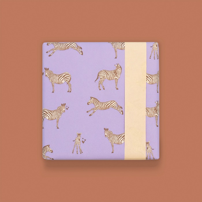 Give your gifts a fun and stylish look with this 150-metre counter roll. The design features cute zebras on a lilac background, drawn in dark brown lines, perfect for girls. The peach reverse adds a soft, playful finishing touch. The strong paper rolls out smoothly, ideal for daily use in your shop or webshop. Perfect for wrapping gift sets, toys, or festive presents. Combine with matching ribbon or stickers for a complete, professional presentation. House of Products supplies sustainable, FSC-certified, high-quality wrapping paper for retailers and webshops.